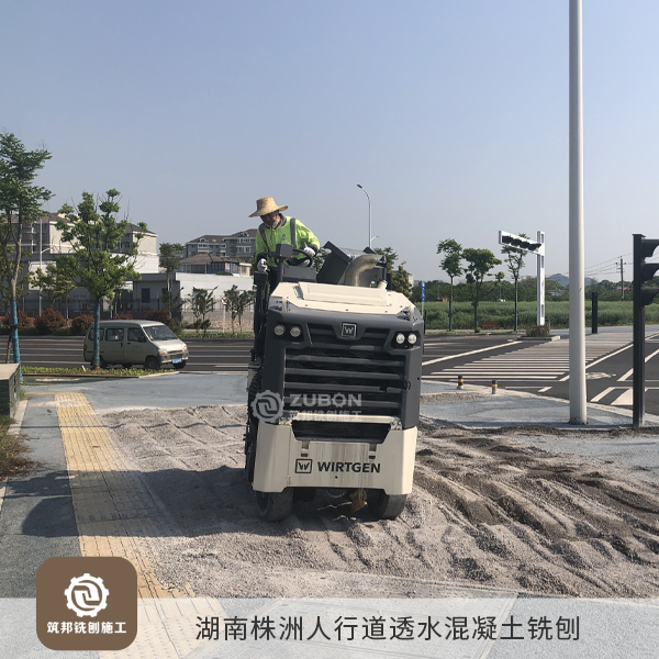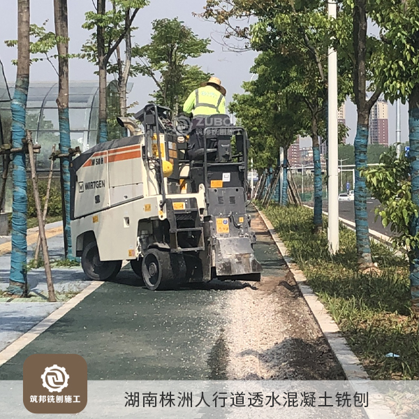 2022年4月 湖南株洲人行道透水混凝土銑刨。