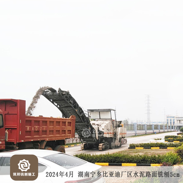 2024年4月27日在湖南寧鄉(xiāng)比亞迪廠區(qū),為了提升路面的平整度和耐用性,我們進(jìn)行了一場專業(yè)銑刨施工。此次施工的主要目標(biāo)是去除路面表層5公分的水泥層,以便于后續(xù)的鋪設(shè)工作。
