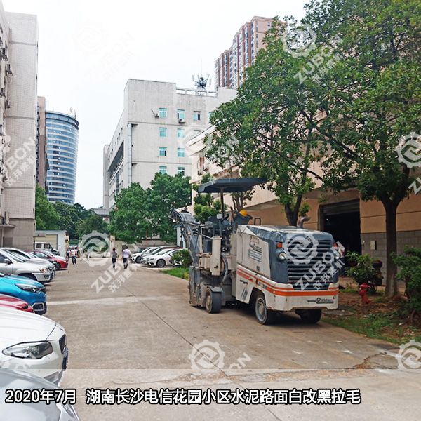 本周工程案例播報:2020年7月湖南長沙電信花園小區水泥路面白改黑拉毛。