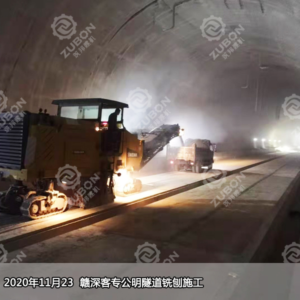 說到新建高鐵隧道,對于隧道長度超過6KM以上的無渣軌道,隧道仰拱面和找平層因為標高控制不嚴,或者施工過程中的二次污染及破壞,澆筑混凝土前,對原仰拱及填充面進行清理鑿毛鑿除已澆筑混凝土表面的水泥砂漿和松散層,然后用高壓水仰拱填充頂面沖洗干凈去除泥灰、積水等雜質,使其標高達到設計要求就需要用大型銑刨機進行連續銑刨,作業效率,小時每臺1000㎡,按一天8小時計算,一天能銑刨水泥混凝土8000㎡,大型銑刨機能連續性施工在節約施工成本的基礎上縮短了工期,適用于面積大,趕工期的項目。