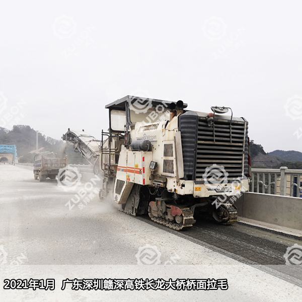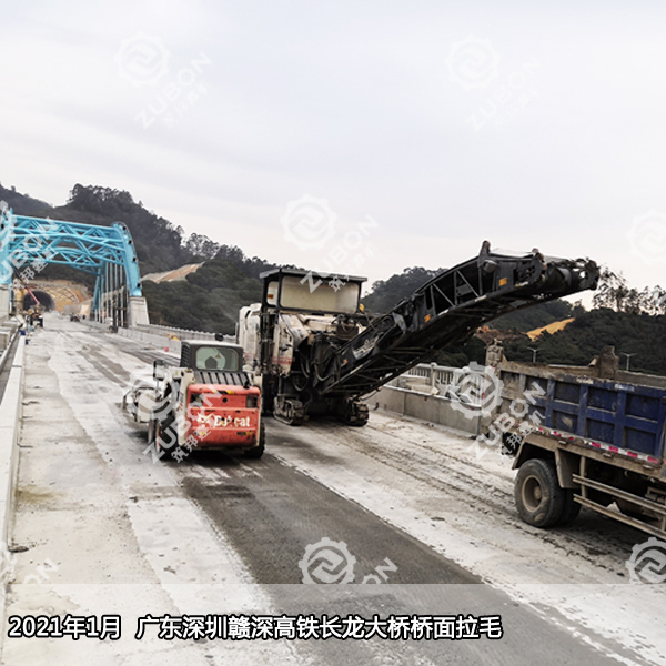 2021年1月12日廣東深圳贛深高鐵長(zhǎng)龍大橋橋面拉毛。深圳銑刨機(jī)租賃