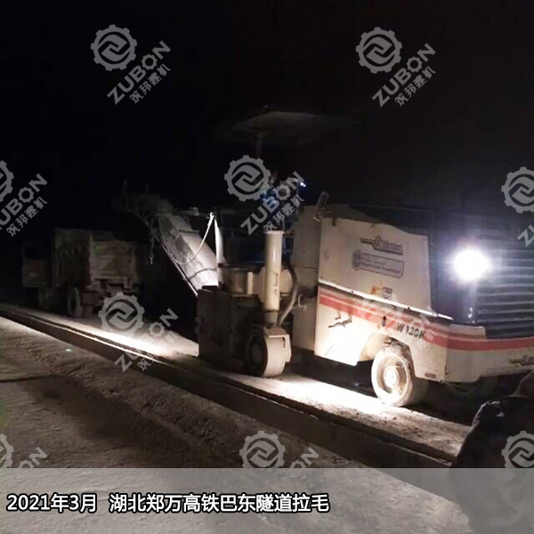 對于隧道長度超過6KM以上的無渣軌道,隧道仰拱面和找平層,因為標高控制不嚴或者施工過程中的二次污染及破壞,澆筑混凝土前對原仰拱及填充面進行清理鑿毛,鑿除已澆筑混凝土表面的水泥砂漿和松散層,然后用用高壓水仰拱填充頂面沖洗干凈,去除泥滅、積水等雜質,使其標高達到設計要求,就需要用大型銑刨機進行連續銑刨作業,無論從銑刨深度還是銑刨效率及平整度而言,筑邦溫馨提示大型銑刨機比小型手推式銑刨機有明顯優勢。采用德國進口專用設備施工,施工質量控制精度高,施工方便、進度快,施工后具有宏觀平整、微觀粗糙的表面,能提供足夠抗滑構造。