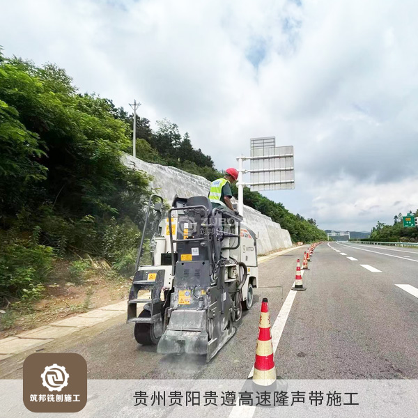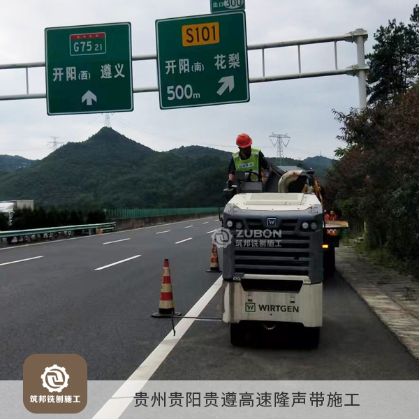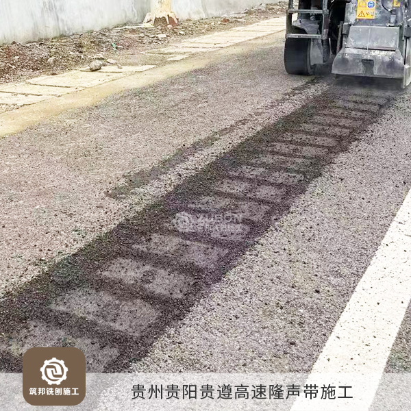 本次隆聲帶施工用到的是專業隆聲帶銑刨機,施工效率高,一天可銑刨10公里,銑刨出來的隆聲帶效果極佳;凹槽最深為13mm,截面為圓弧狀,因為深度較淺,積水和積塵很容易被車輪的高速氣流帶走。而且連續高密度的凹槽寬度達到40公分以上,在制造輪胎噪音的同時也保證了車胎足夠的抓地摩擦力,確保了行車安全。