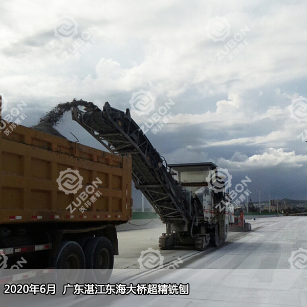 湛江東海大橋全長4.39公里,雙向4車道,為跨海特大橋,是湛江市通往東海島的主要交通要道。2010年12月建成通車至今,已投入使用近10年,給湛江市、東海島兩地的出行交流帶來極大便利,促進了湛江經濟的繁榮發展。 近年來隨著東海大橋使用年限的增長,受到一些自然因素(如降雨等)以及人為因素(如交通負載等)的影響,遭到不同程度的磨損,失去了一定的防滑性能,在大橋上曾發生幾起大型交通事故,為了消除東海大橋現有安全隱患和改善行車環境,采用精銑刨工藝是最佳選擇。